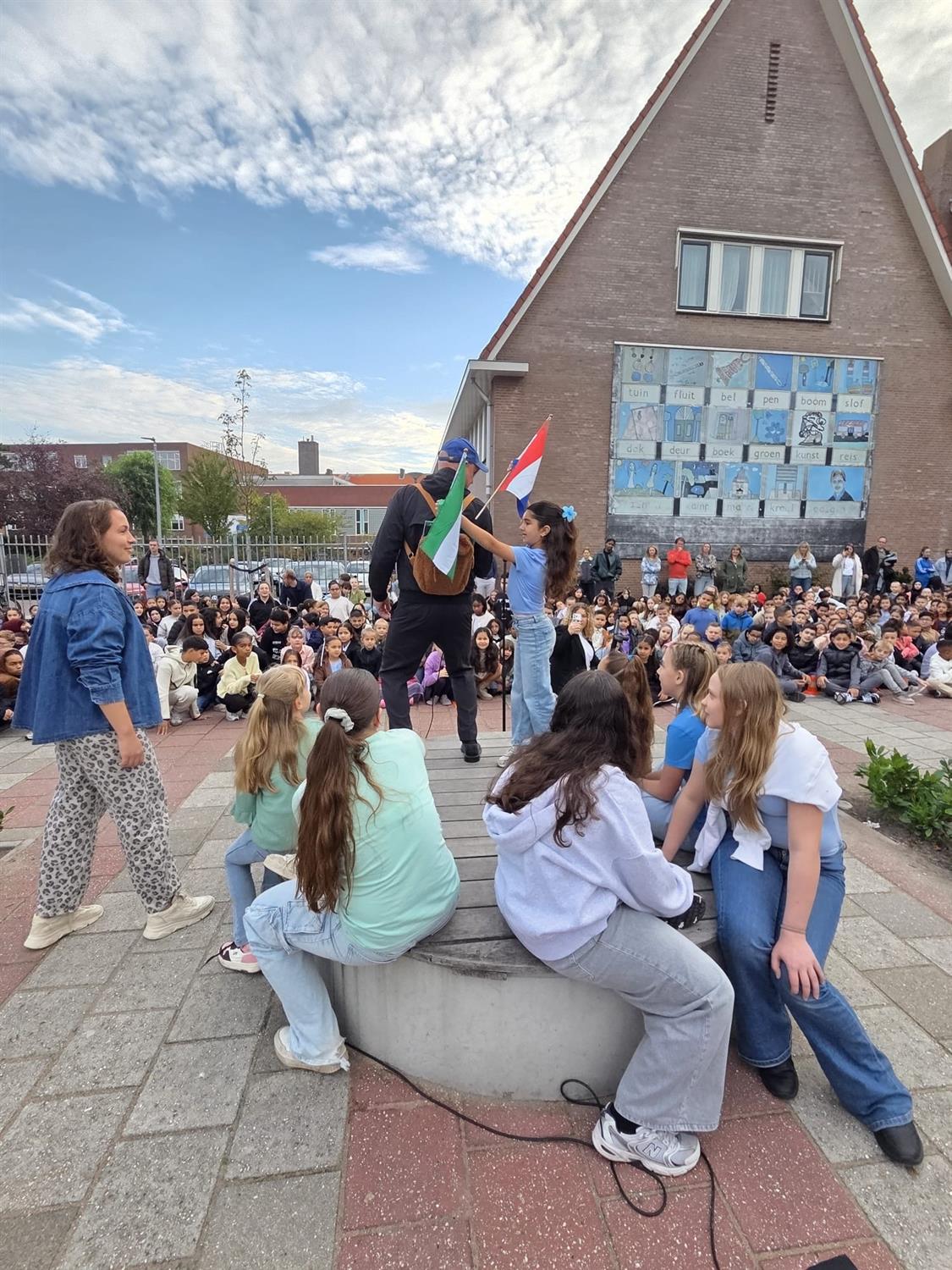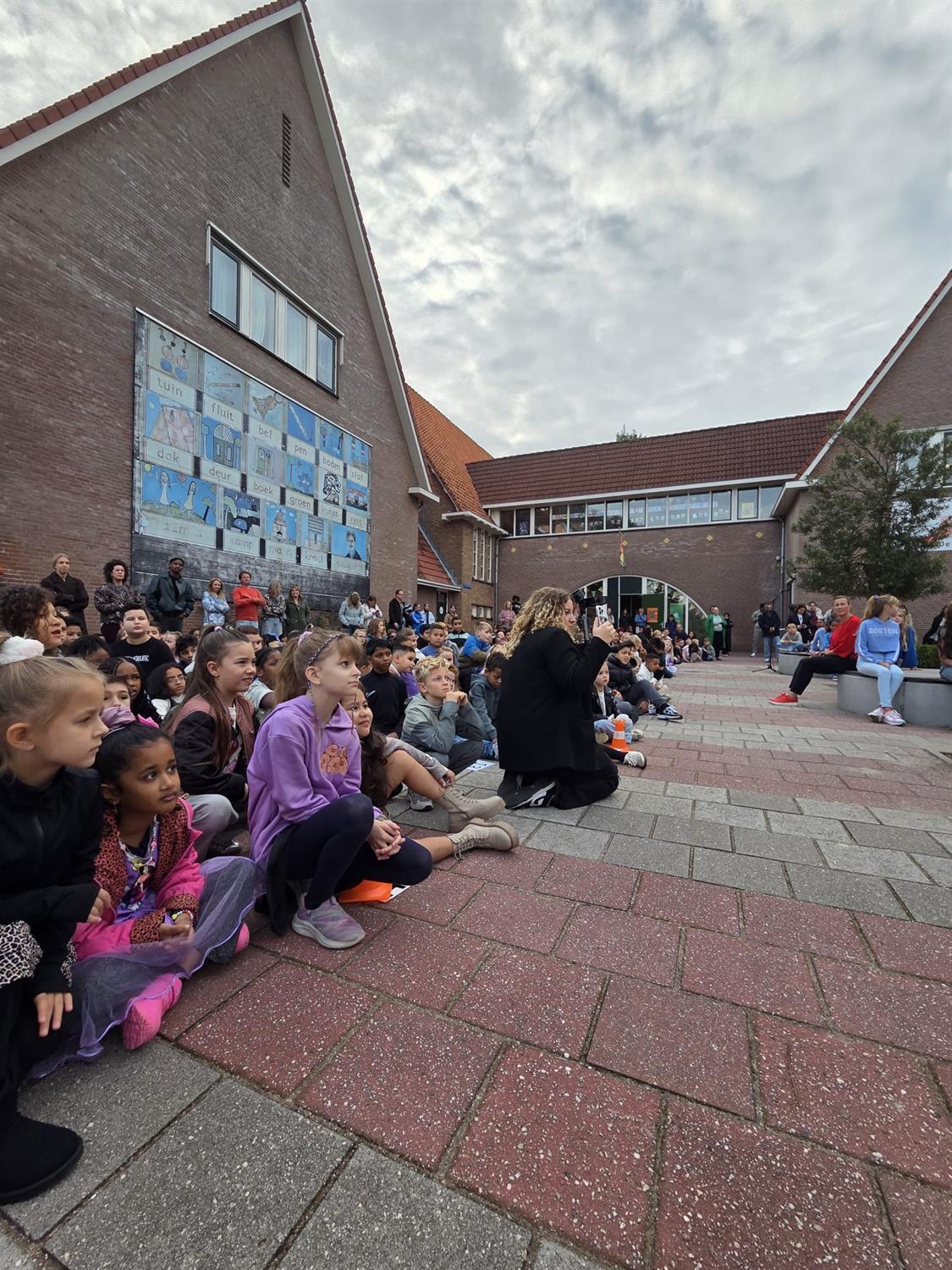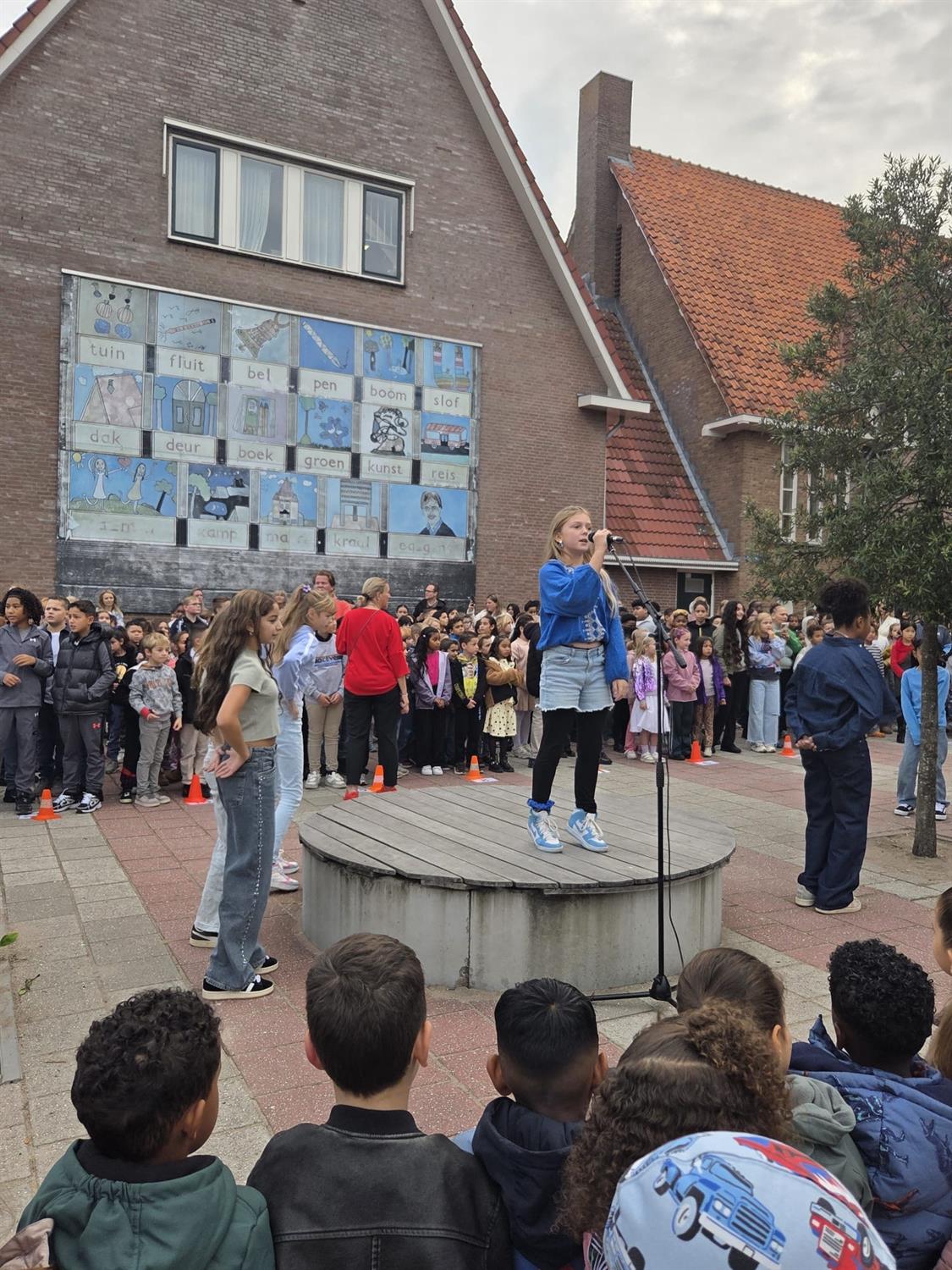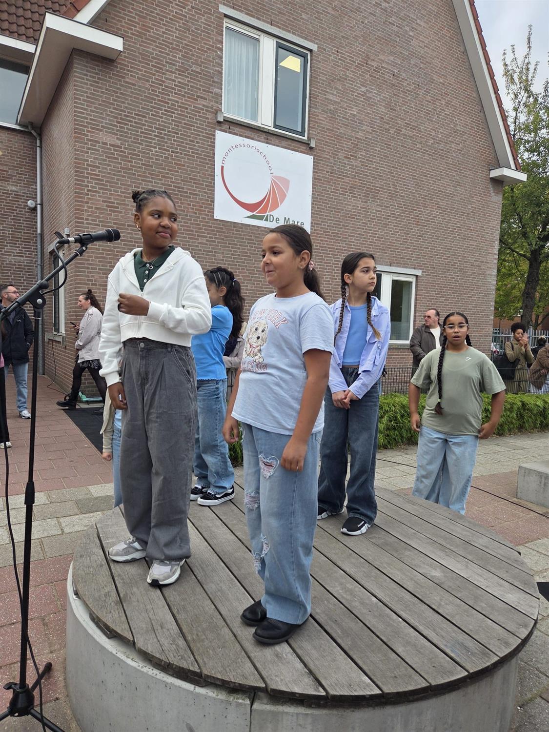 Het Kinderkoor van de Mare heeft voor alle kinderen van de Mare opgetreden met het Kinderboekenweeklied "Vol Avontuur" en natuurlijk mocht iedereen meezingen.