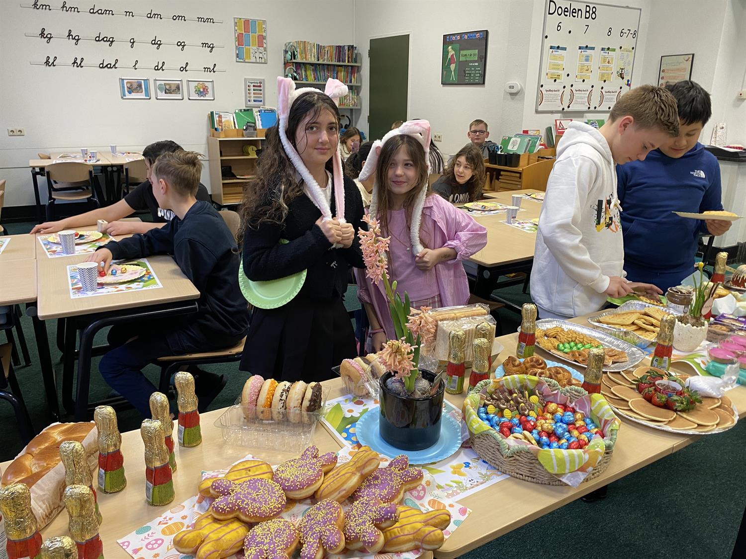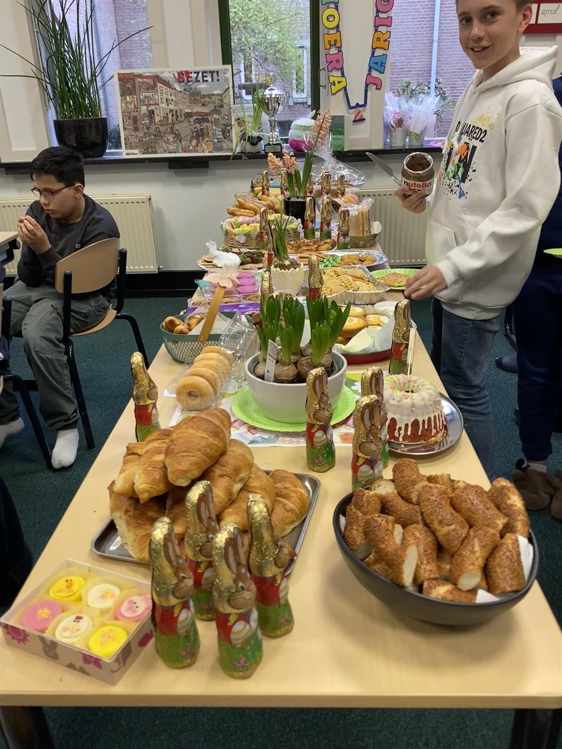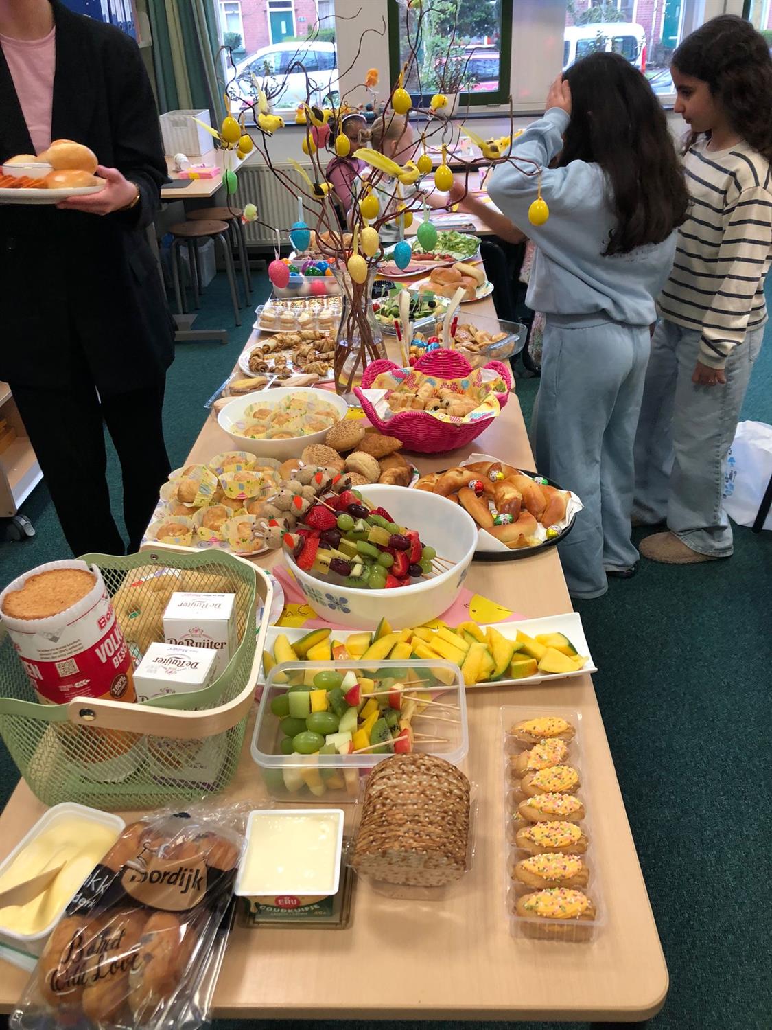 Op de Mare genoten alle klassen van een gezellig paasontbijt. Iedereen had iets lekkers meegenomen, waardoor de tafels rijk gevuld waren met allerlei smakelijke hapjes. De tafels waren bovendien prachtig aangekleed, wat zorgde voor een feestelijke sfeer in de klas. We willen de ouders hartelijk bedanken voor alle heerlijke lekkernijen.